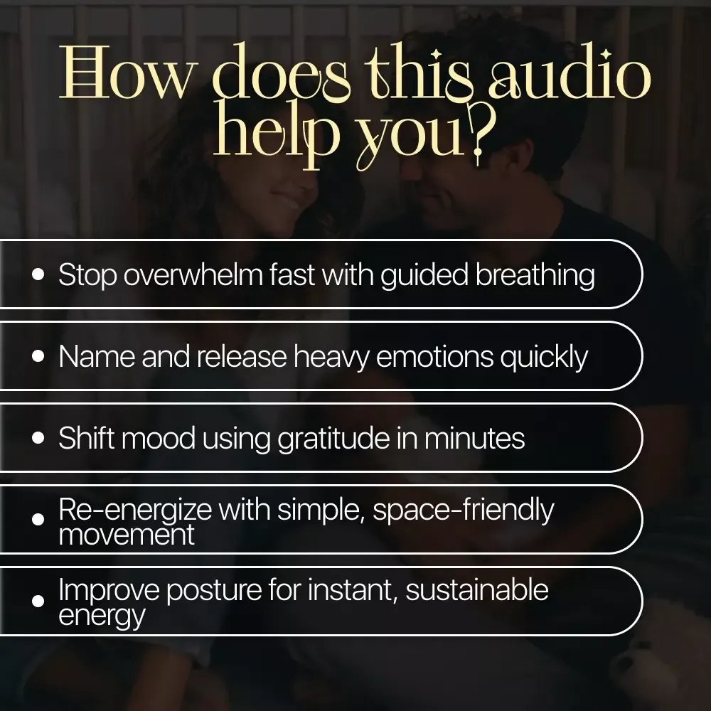 Feeling stretched thin as a parent, this audio course has been my saving grace. In just five minutes, I can reset my mind and emotions, and even get a quick energy boost. The practical tips are easy to follow and fit right into my busy schedule.