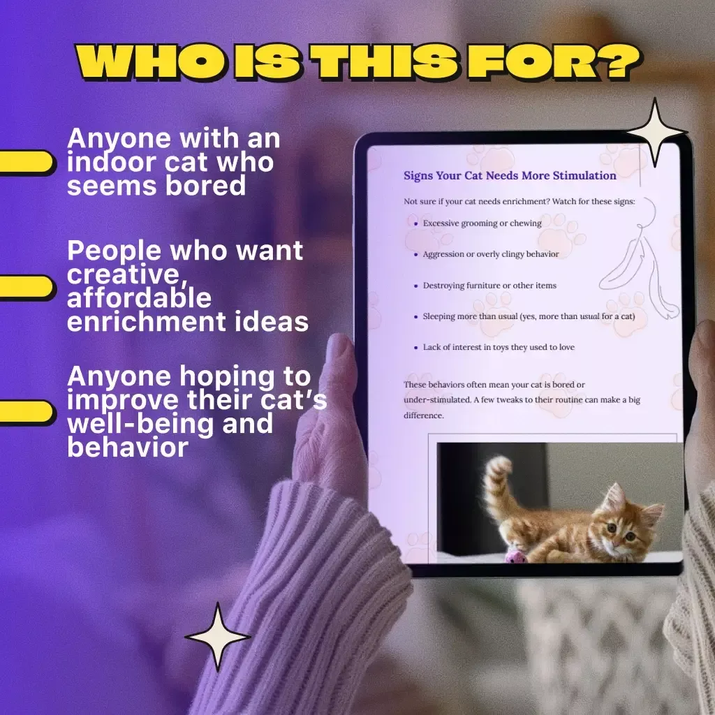 Unlike generic cat advice articles, the Enrichment Ideas for Indoor Cats guide offers a structured, practical plan you can start using immediately. With step-by-step instructions, safety tips, and routines designed for real-life homes, it’s more than inspiration—it’s a solution.