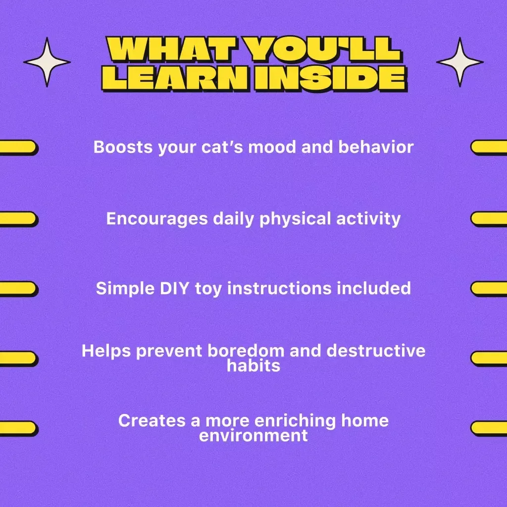 My cat was restless and often scratched furniture, but this gave me solutions that actually worked. I set up small play routines and made a few toys from the suggestions, and the difference is incredible. My cat now spends hours engaged instead of frustrated. It feels like we finally found balance in our home.