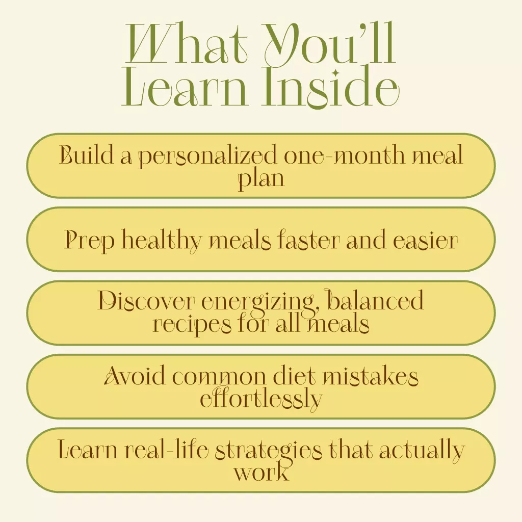 - Introduction: A warm welcome and overview of how to use your meal plan.