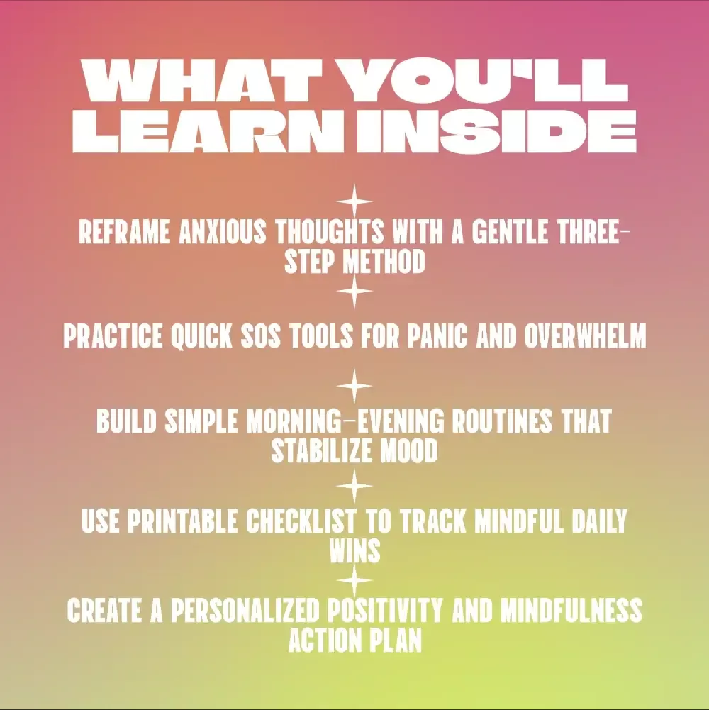 - How to Think Positive with Anxiety Guide — Understand why “just think positive” backfires, learn a simple 3-step reframing method, use anxiety-friendly affirmations, and build a personalized positivity plan with real-life case studies.